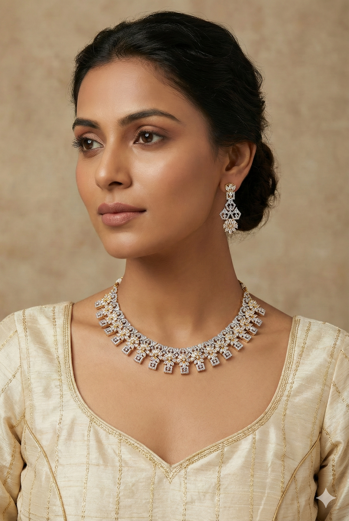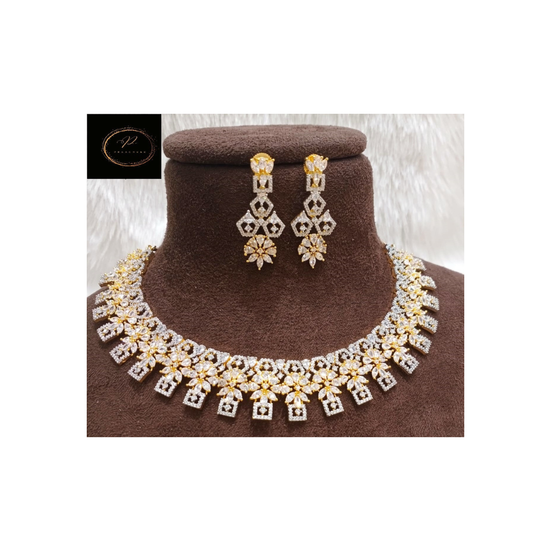 American diamond short necklace in rose gold plating with earrings