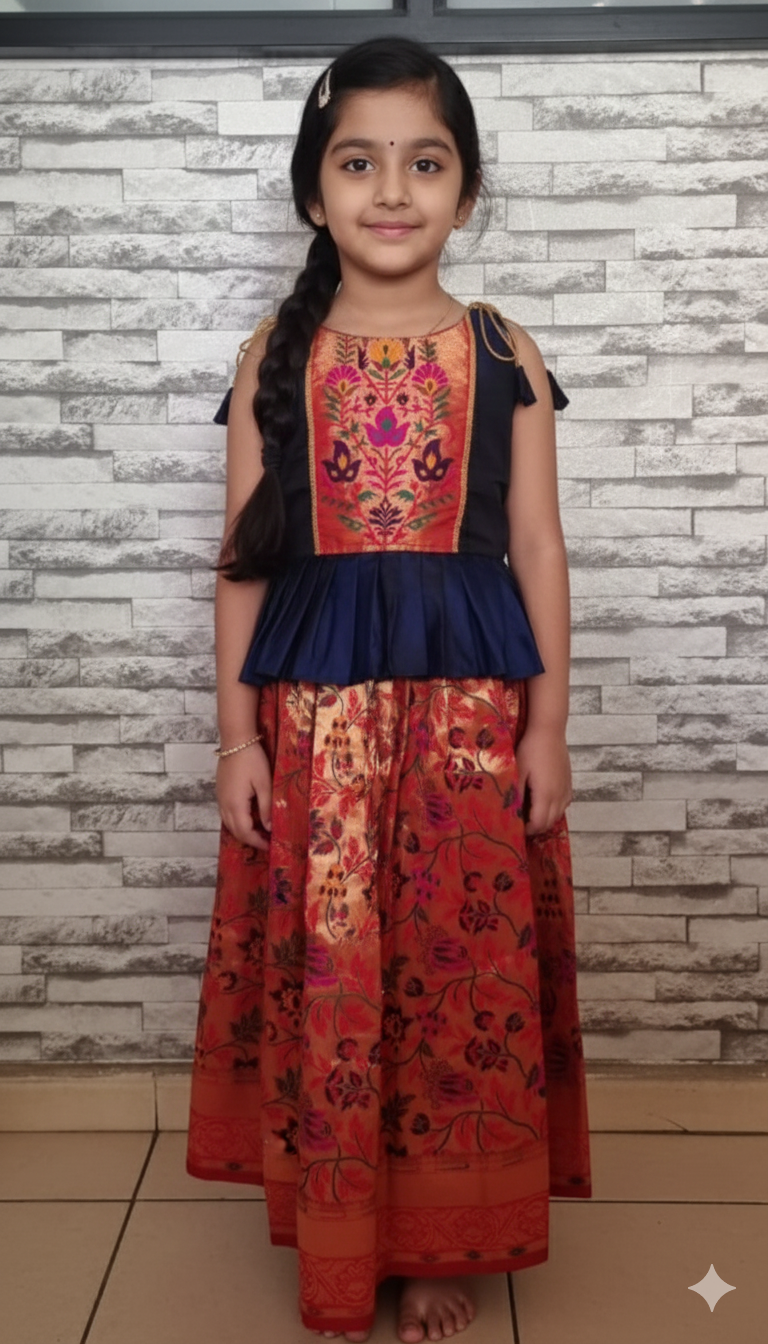 Beautiful Paithani Ghagra Choli for girls 6 months to 14 years   | Shop Online at PRAAGNEEK UAE ✓ Delivery all over UAE ✓  Cash on Delivery ✓ Credit Card Payment
