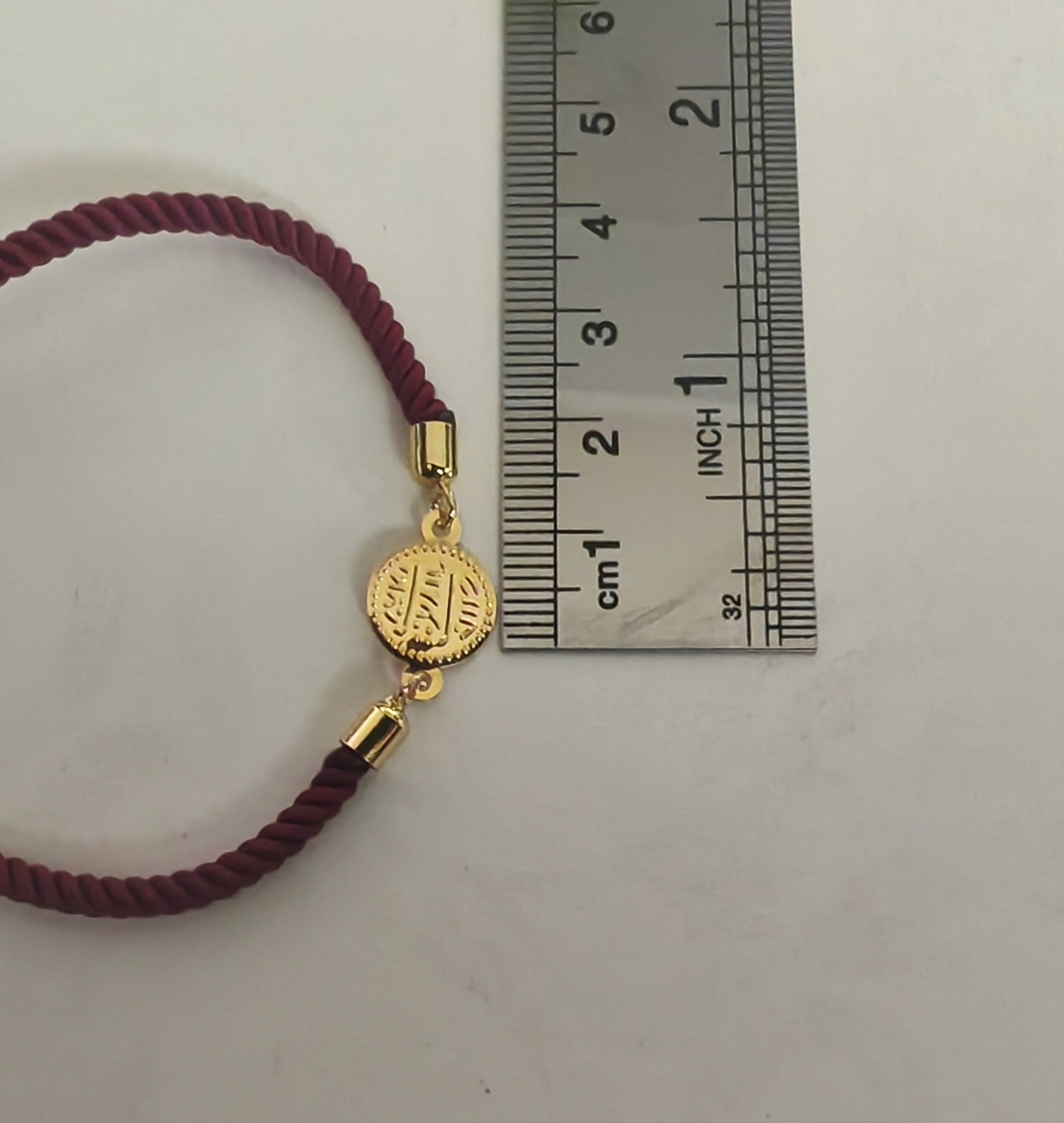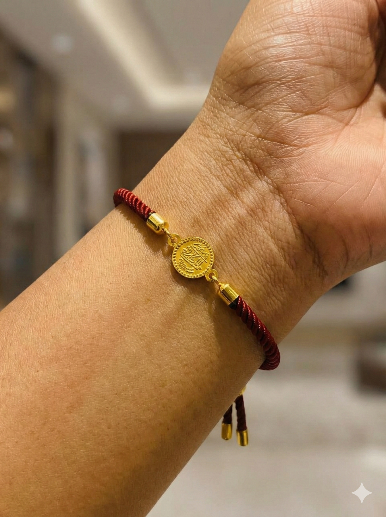 Based on the image of the bracelet the Arabic calligraphy on the gold coin reads: