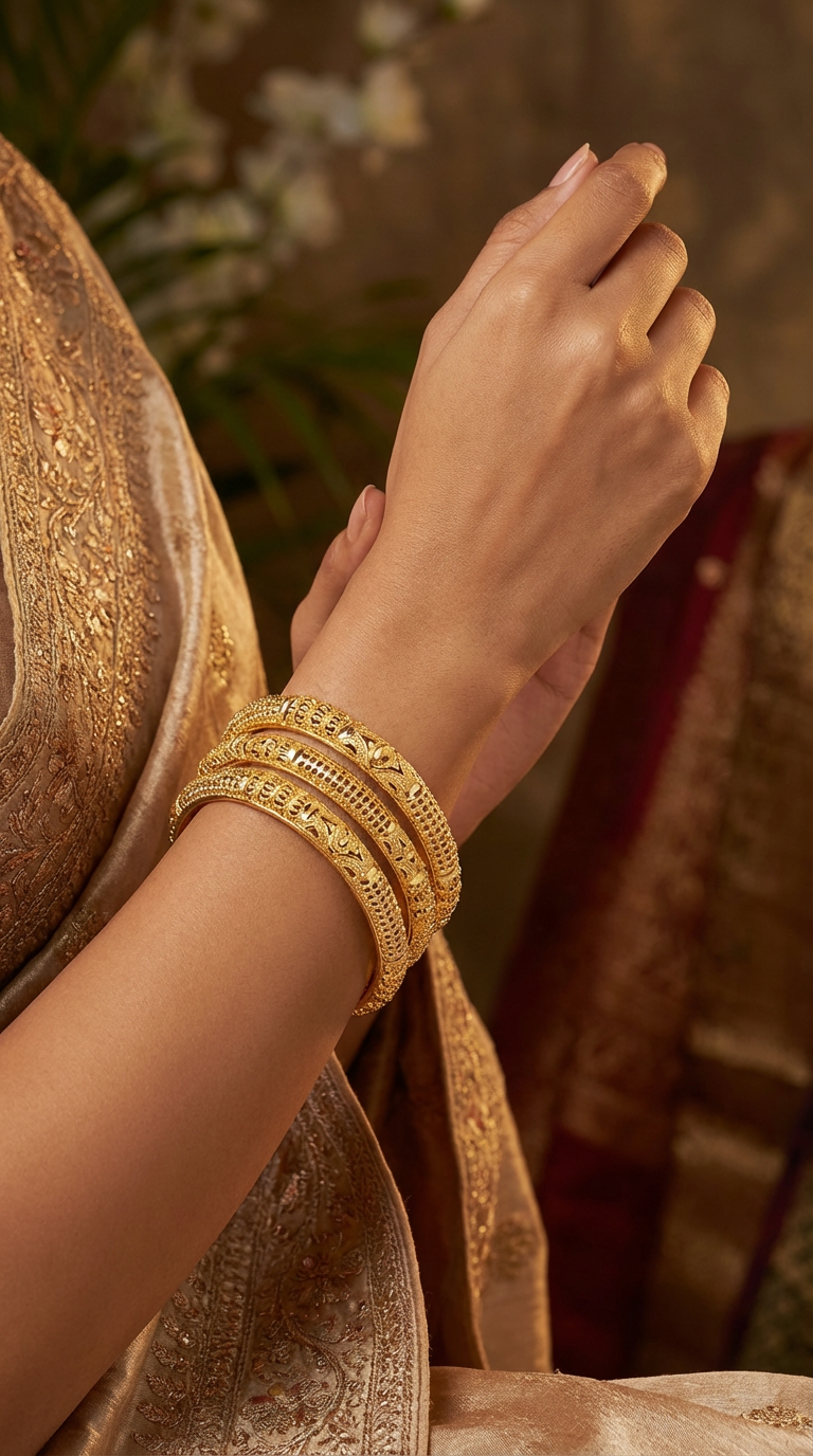 Achieve the luxurious look of gold without the premium price with these charming and lightweight imitation bangles. Featuring an elegant design and a delicate pattern, they're the perfect comfortable accessory to enhance your traditional or modern ensembles, ideal for weddings, festivities, or daily wear